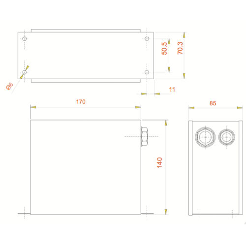 The new housing is filled with resin, ensuring waterproof performance of the unit, which is particularly important in outdoor applications.